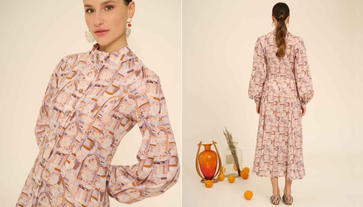 Sentendomi affine alla sua natura, ho deciso di concederle uno spazio all’interno del mio flusso creativo, e dalla contemplazione delle sue forme è nata Gisella, un modello di chemisier che si ispira al fiore di Ipomea e alla sua sinuosità.
